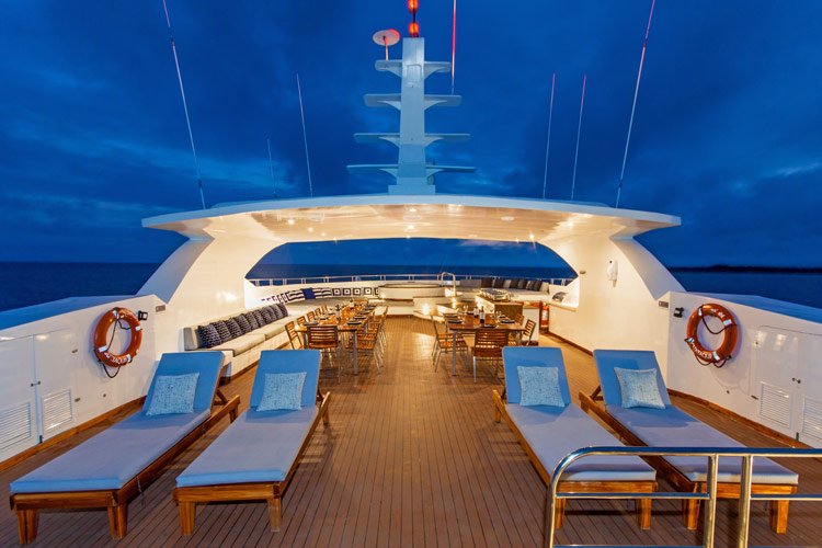 Infinity is the largest vessel in the fleet, welcoming 20 guests in two spacious suites and eight cabins — some interconnectable, making her ideal for families and groups. Every cabin features panoramic windows and a private balcony. With two certified naturalist guides on every departure, guests enjoy a more personal introduction to the archipelago’s wildlife and geology. Choose from four itineraries — two 8-day expeditions covering the eastern and western islands, a 5-day southern route through Floreana and Espanola, and a compact 4-day northern voyage to Genovesa and Santiago. Al-fresco dining, a jacuzzi, and four double kayaks complete the onboard experience.